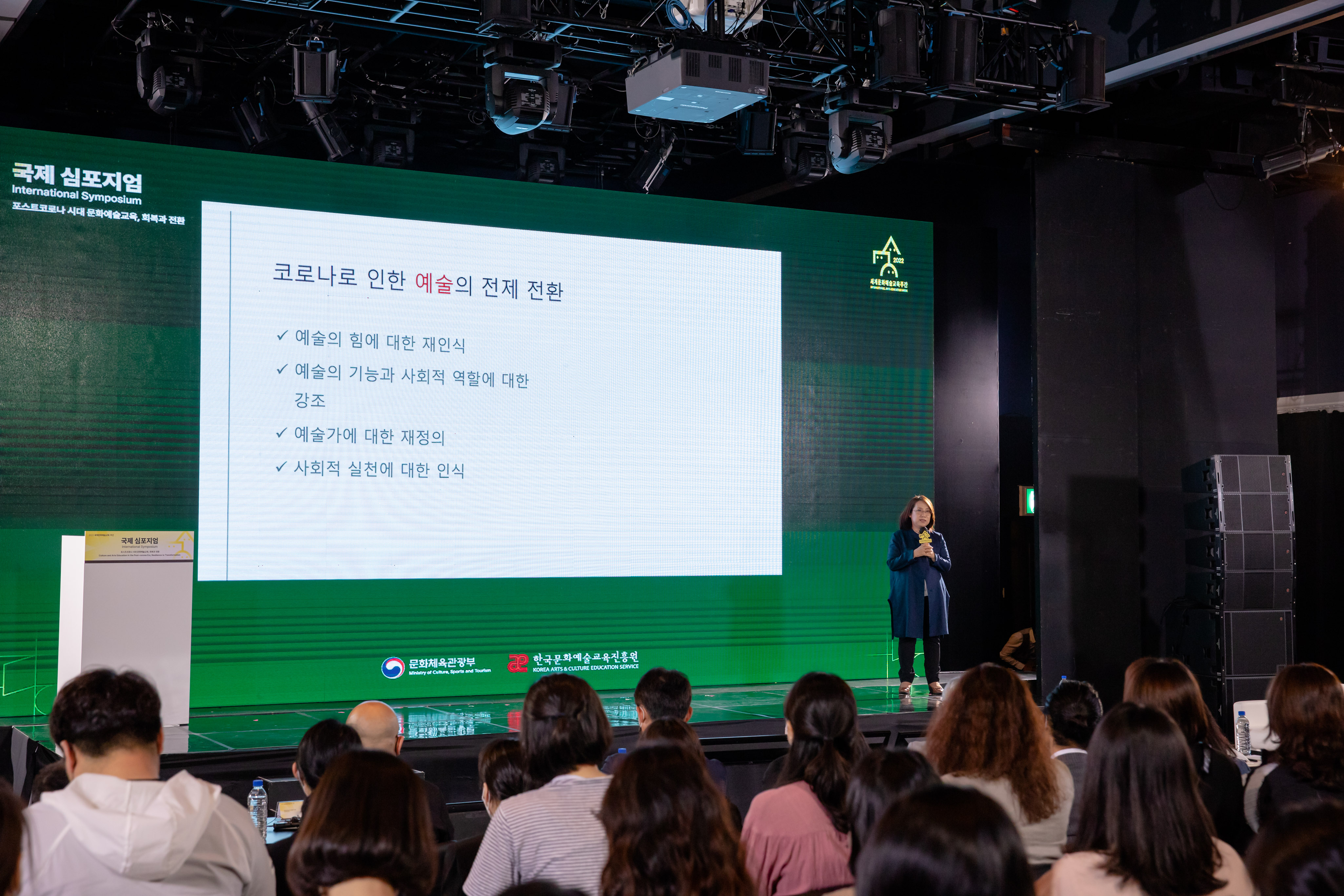 코로나19 이후, 3년 만에 문화예술교육 국제 심포지엄을 통해 세계 5개국의 문화예술교육 학계와 현장 전문가, 문화예술교육자가 모여 각국 문화예술교육의 정책, 사례, 의견을 상호 교환하는 오프라인 행사를 개최하였습니다. 또한 10개의 문화예술교육 유관학회와 연계한 학술 세미나가 온라인과 오프라인으로 진행되었습니다.