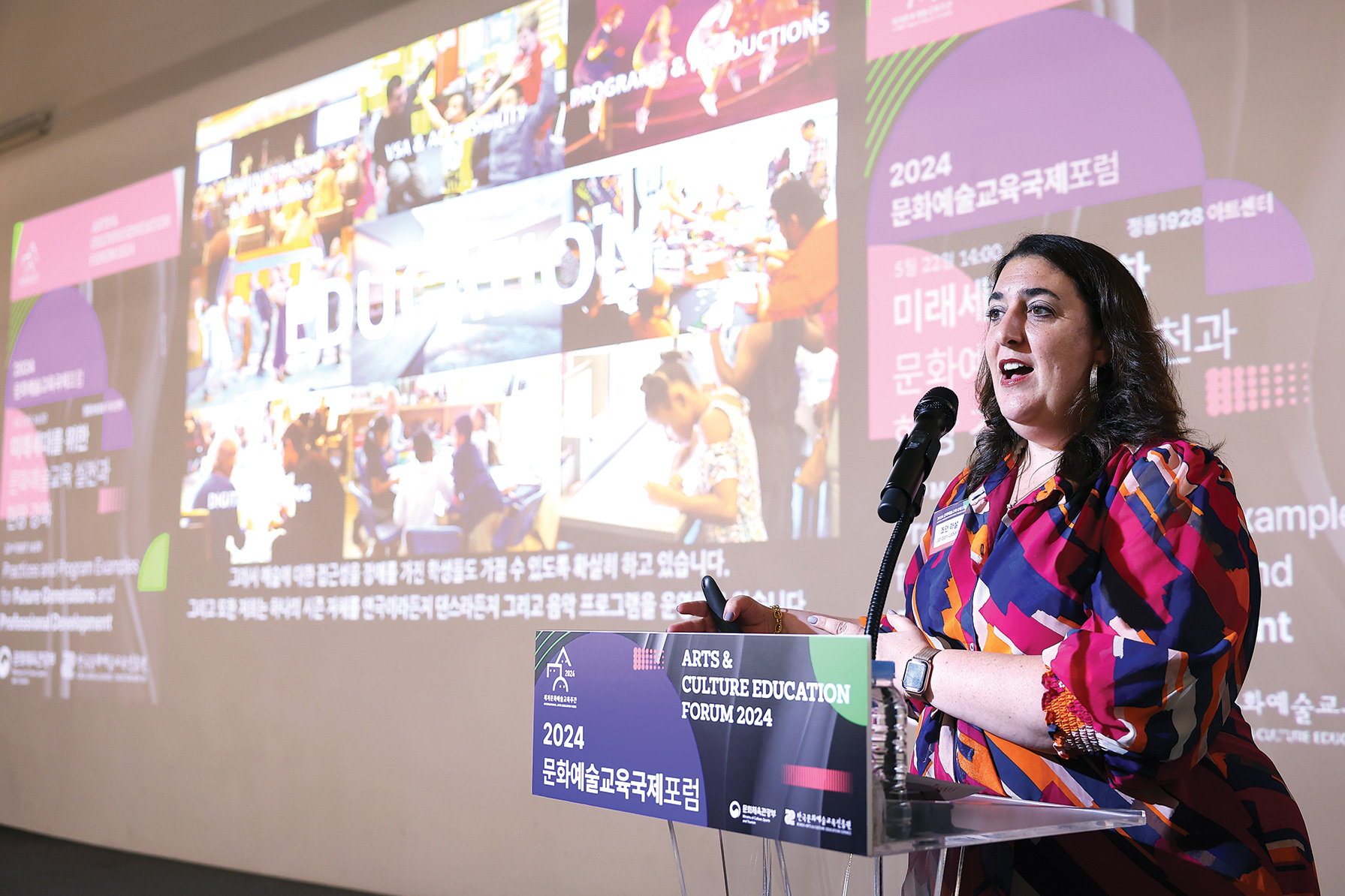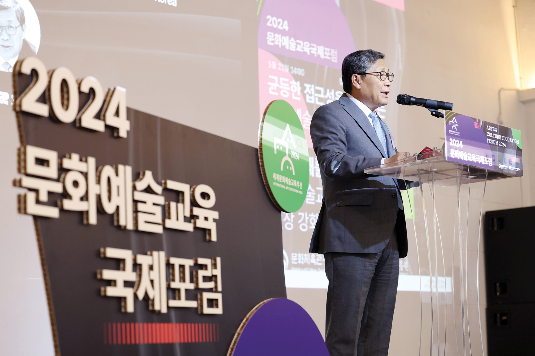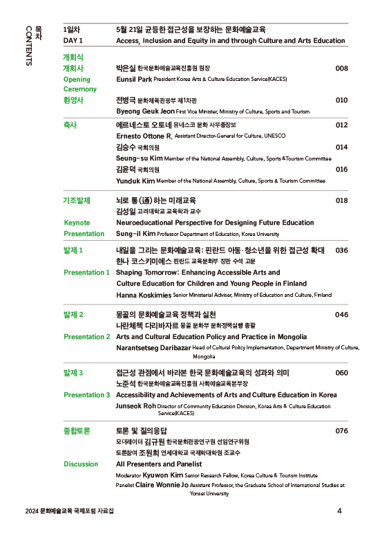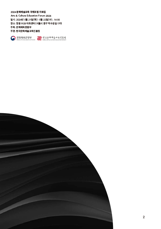 2024 세계문화예술교육 주간행사는 유네스코 프레임워크를 바탕으로 ‘문화예술교육으로 여는 내일, 지속가능한 미래’를 주제로 개최되었다. ▲2024 문화예술교육 국제포럼 ▲제4회 미래 문화예술교육 포럼 ▲2024 ‘꿈의 향연’ 공연 ▲2024 치유도 예술로 워크숍 등 다양한 프로그램이 진행했으며, 이외에도 국민들이 일상 속에서 문화예술교육을 체험할 수 있는 전국 단위의 다채로운 참여형 행사들이 함께 운영되었다.