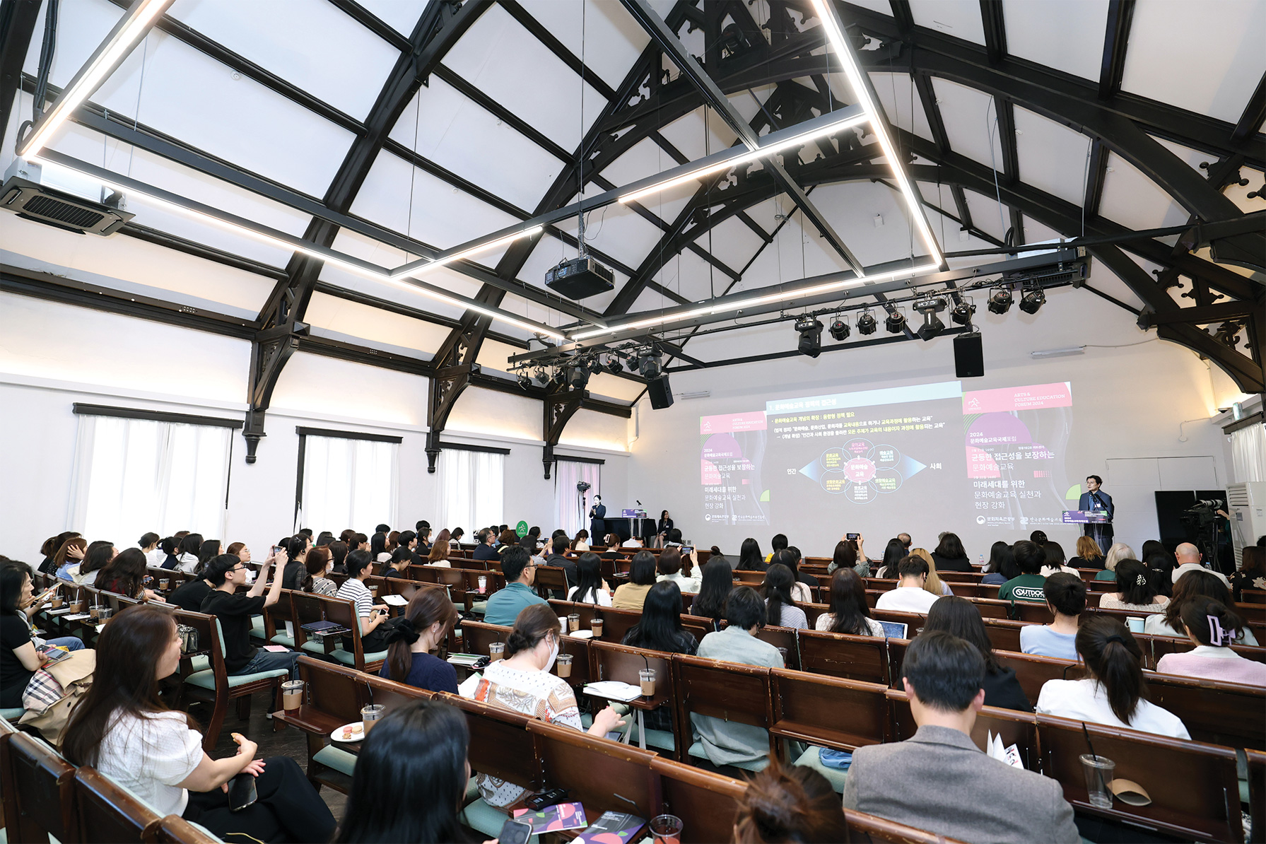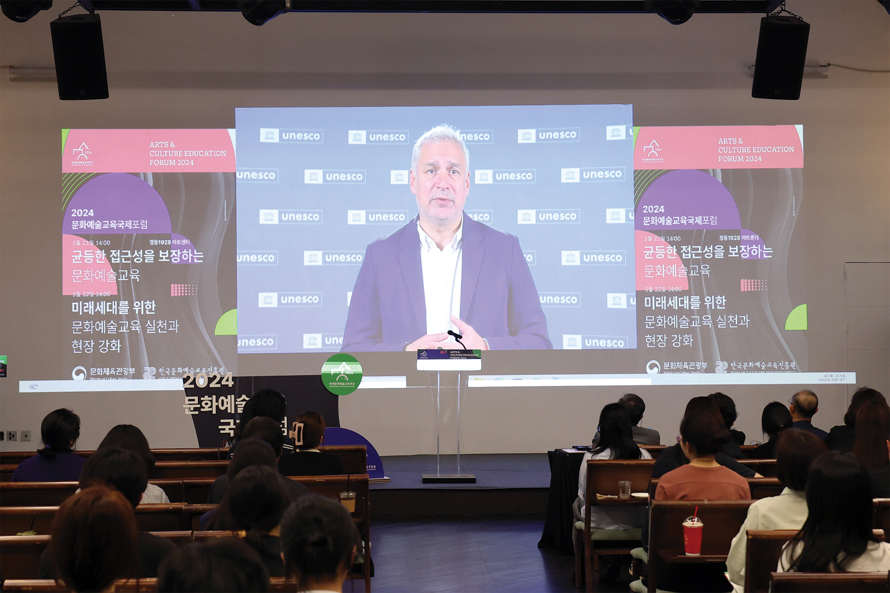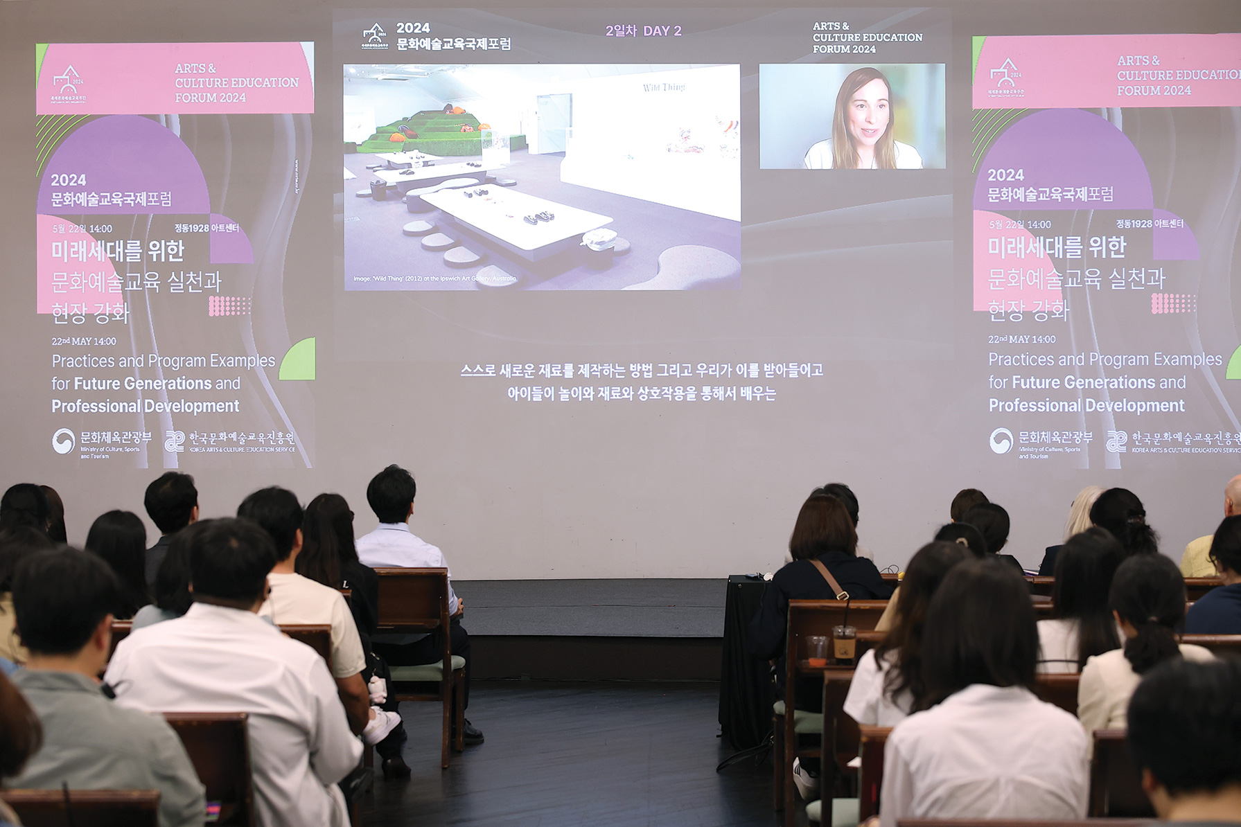 2024 세계문화예술교육 주간행사는 유네스코 프레임워크를 바탕으로 ‘문화예술교육으로 여는 내일, 지속가능한 미래’를 주제로 개최되었다. ▲2024 문화예술교육 국제포럼 ▲제4회 미래 문화예술교육 포럼 ▲2024 ‘꿈의 향연’ 공연 ▲2024 치유도 예술로 워크숍 등 다양한 프로그램이 진행했으며, 이외에도 국민들이 일상 속에서 문화예술교육을 체험할 수 있는 전국 단위의 다채로운 참여형 행사들이 함께 운영되었다.